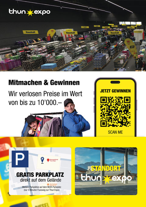 Erlebe Markenvielfalt, Spitzenqualität und sensationelle Rabatte auf der Thun Expo. Komm vorbei und sicher dir die besten Schnäppchen des Jahres! Nur für kurze Zeit und nur solange der Vorrat reicht.